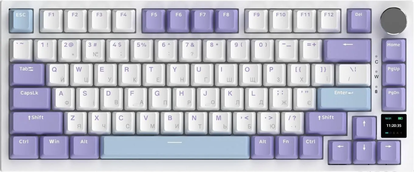 - Кейкапы: Изготовлены из PBT-пластика, устойчивого к истиранию и появлению жирного блеска.