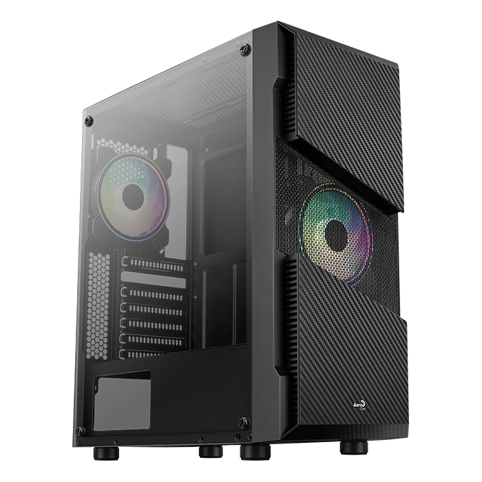- Передняя панель с отделкой под углеволокно придает вашему игровому ПК футуристический внешний вид.
