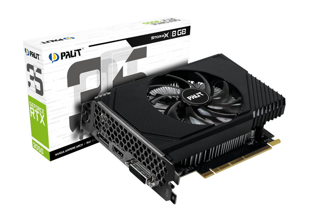 Palit GeForce RTX 3050 StormX, разработанный специально для пользователей небольших ПК, может похвастаться компактной, но мощной конструкцией с одним вентилятором. Видеокарты StormX с длиной платы 170 мм поддерживают формат Mini-ITX, что делает их идеальными для геймеров и авторов, заботящихся о пространстве.