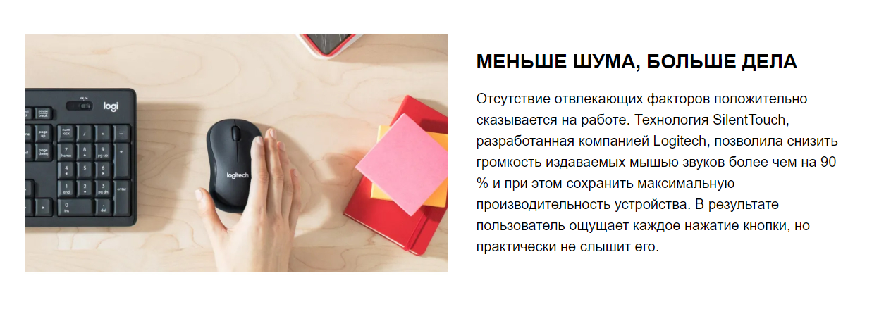 Logitech M220 Silent — это одна из самых популярных беспроводных мышей для тех, кто ценит тишину. Главная фишка модели — бесшумные кнопки, которые сохраняют тактильный отклик, но работают на 90% тише обычных мышей.