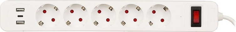 Сетевой фильтр S SMART SM-GS05BK3U-3M ϟ <белый, 16А, 5роз, 3М, EU, 2*USB, Type-C